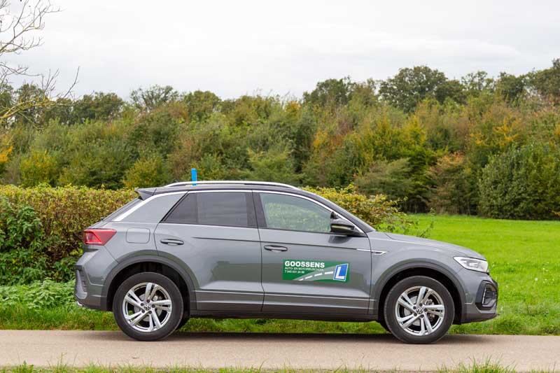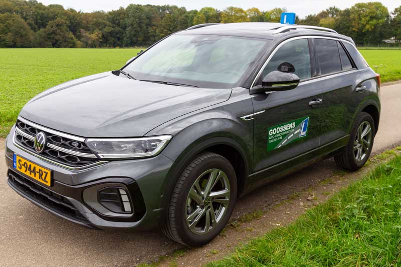 Onze schakelautorijlessen geven wij in een Volkswagen T-Roc in R-line uitvoering (bouwjaar 2023). De T-Roc is een compacte SUV, sportief en robuust. Door de hoge zit bewaar je altijd het overzicht. Het R-line in- en exterieur geeft de auto een zeer sportieve uitstraling en onderscheidt zich daardoor van andere uitvoeringen. De auto is voorzien van alle gemakken en veiligheidsvoorzieningen van de nieuwste generatie op autogebied, zoals lane-assist, automatische afstandscontrole, adaptive cruise control, parkeersensoren en een geïntegreerd navigatiesysteem. Ook beschikt onze T-Roc over een panoramisch schuif-/kanteldak.